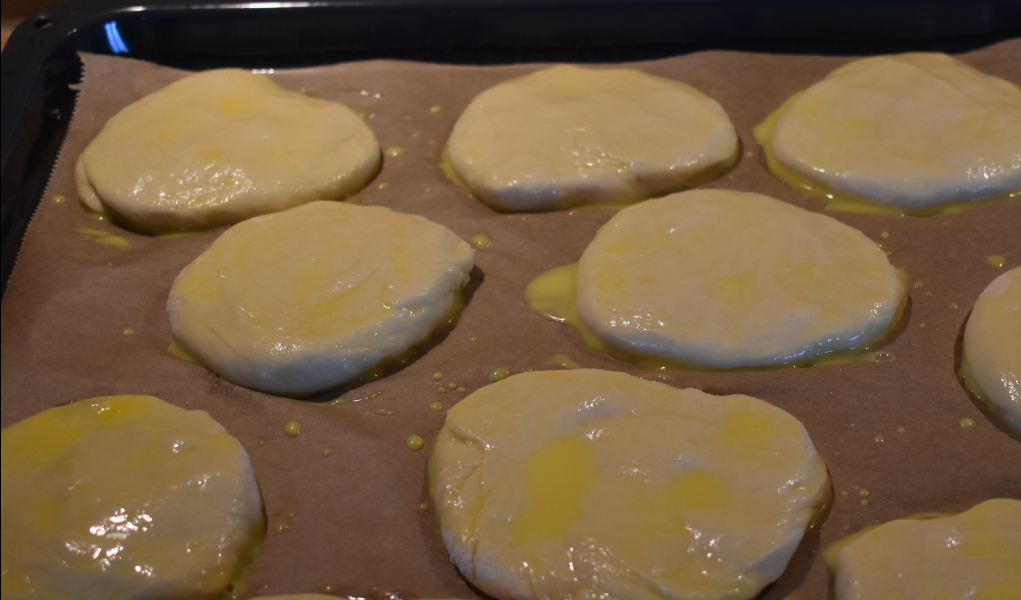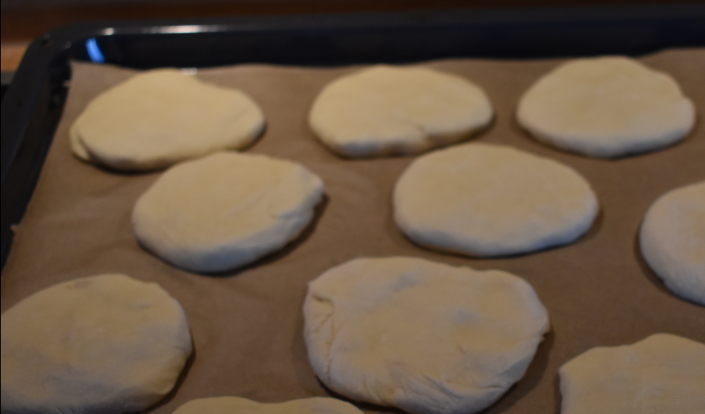 flache, runde Form haben und diese auf ein Backblech legen.